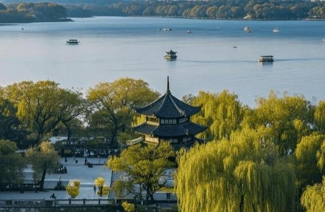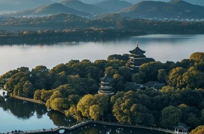 下午:游览西湖十景(断桥、白堤、平湖秋月),租用共享单车环湖骑行,导游在孤山码头讲解“西泠印社”故事,推荐“中国美院象山校区”拍照(建筑与自然融合)。