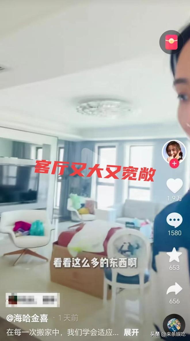 在海哈金喜搬家过程中也无意间透露出了新家的部分内景,可以看得出来,新房子的客厅很大很宽敞,采光不错,有个很大的落地窗,非常亮堂,儿童滑梯放在屋里也一点不显拥挤。