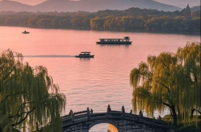 下午:游览西湖十景(断桥、白堤、平湖秋月),租用共享单车环湖骑行,导游在孤山码头讲解“西泠印社”故事,推荐“中国美院象山校区”拍照(建筑与自然融合)。