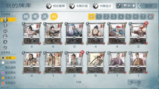 2.用你的卡库中已有的属于这个君主的兵(士兵)、将(将领)、计(兵书)beat365、阵(阵法)、器(配备)五种卡牌修筑一套和平用的, 总卡牌的总下限数没有固定,玩家可以依照需求正在30-40张之间浮动。